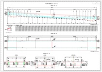スパン50m程度の本線橋(単純箱桁)と、同規模の跨道橋の予備検討、線形計算、詳細設計、図面作成、数量算出までを一式お手伝いしました。
